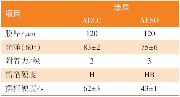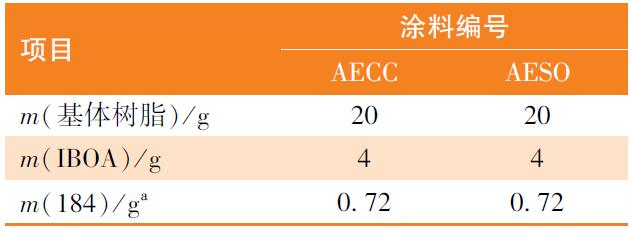 [8]。环氧大豆油丙烯酸酯(AESO)是大量工业化的植物油基树脂,已经在木器涂料领域得到了广泛应用,但因其主链为柔性结构,导致其固化膜的玻璃化转变温度较低,机械力学性能较差,很大程度上限制了其在涂料中的应用,因此亟待开发出新型高生物基含量的性能优异的生物基树脂